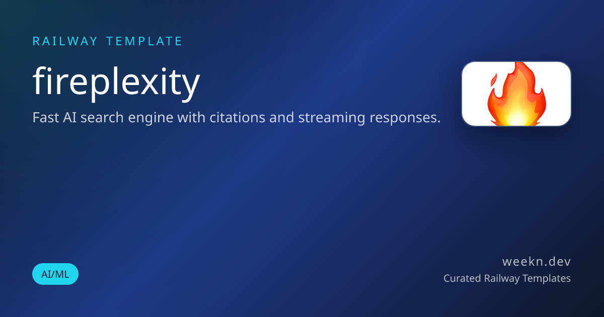 By deploying fireplexity on Railway, you are one step closer to supporting a complete full-stack application with minimal burden. Host your servers, databases, AI agents, and more on Railway.