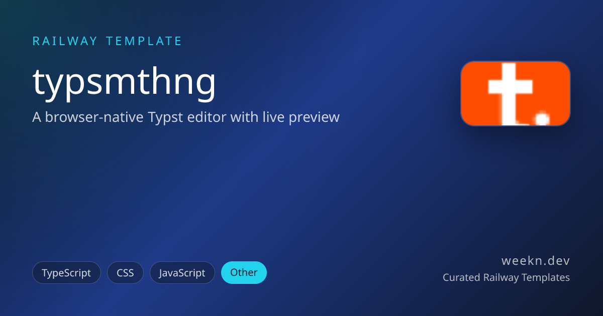 typsmthng is a browser-native Typst editor with live preview, built entirely on WebAssembly. It compiles Typst markup to SVG directly in the browser with no server-side processing. Features include multi-file project management, IndexedDB persistence, PDF export, zip import/export, Vim mode, and PWA installability.